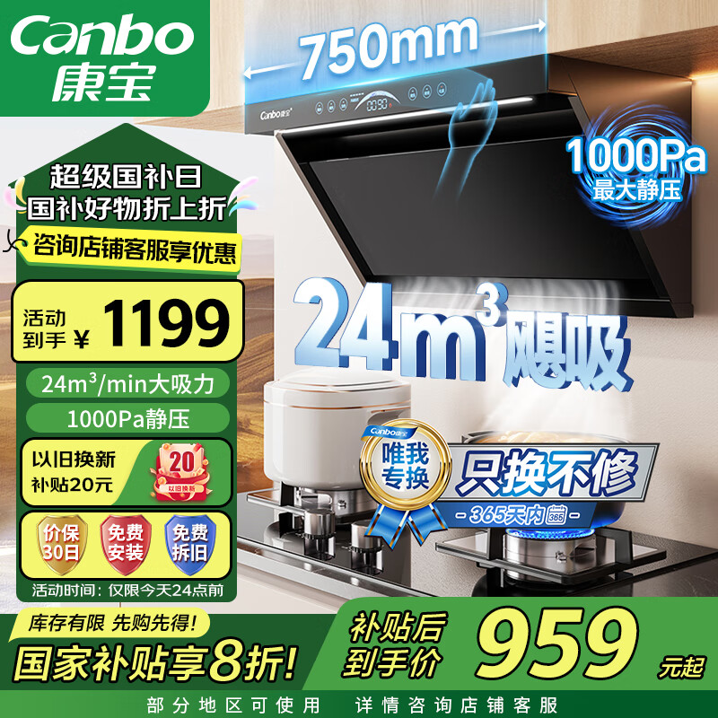 康宝(Canbo)750mm小尺寸油烟机家用顶侧抽油烟机大吸力厨房自清洁抽油烟机【补贴】CXW-250-BE750价格:1199.00元!