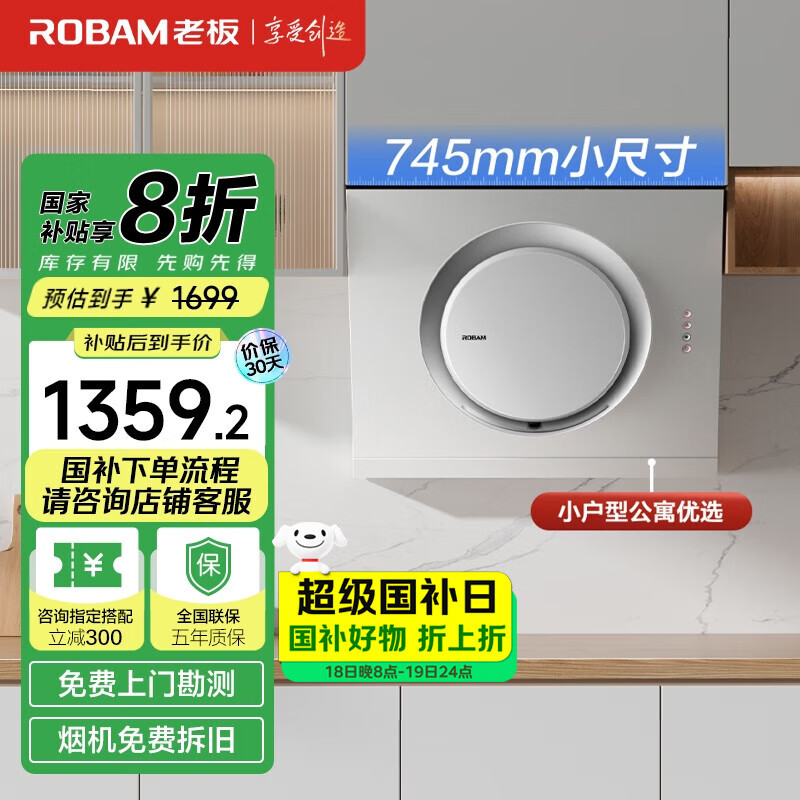 老板(Robam)抽油烟机小户型油烟机家用侧吸吸排油烟机白色小尺寸一级能效吸油烟机 以旧换新排烟机21A6H价格:1699.00元!