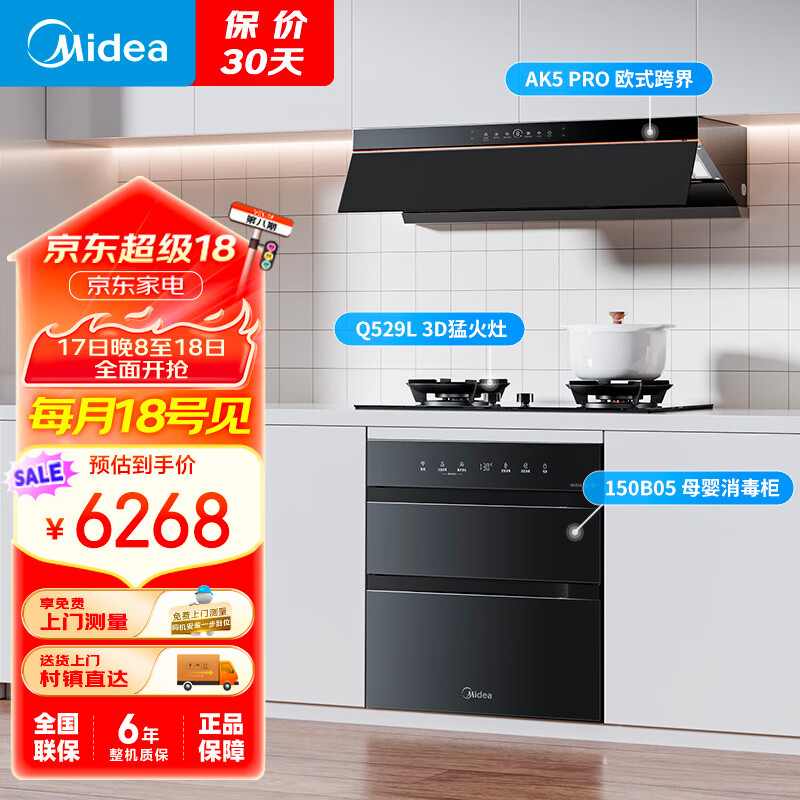 美的(Midea)烟灶消三件套AK5 PRO+Q529L-T+150B05价格:6268.00元!