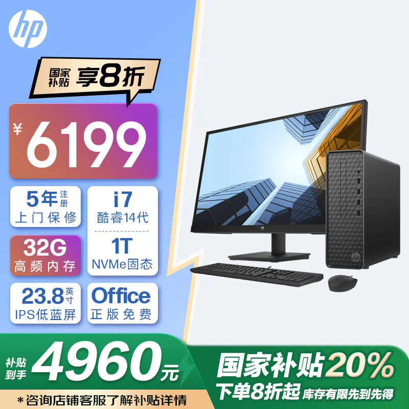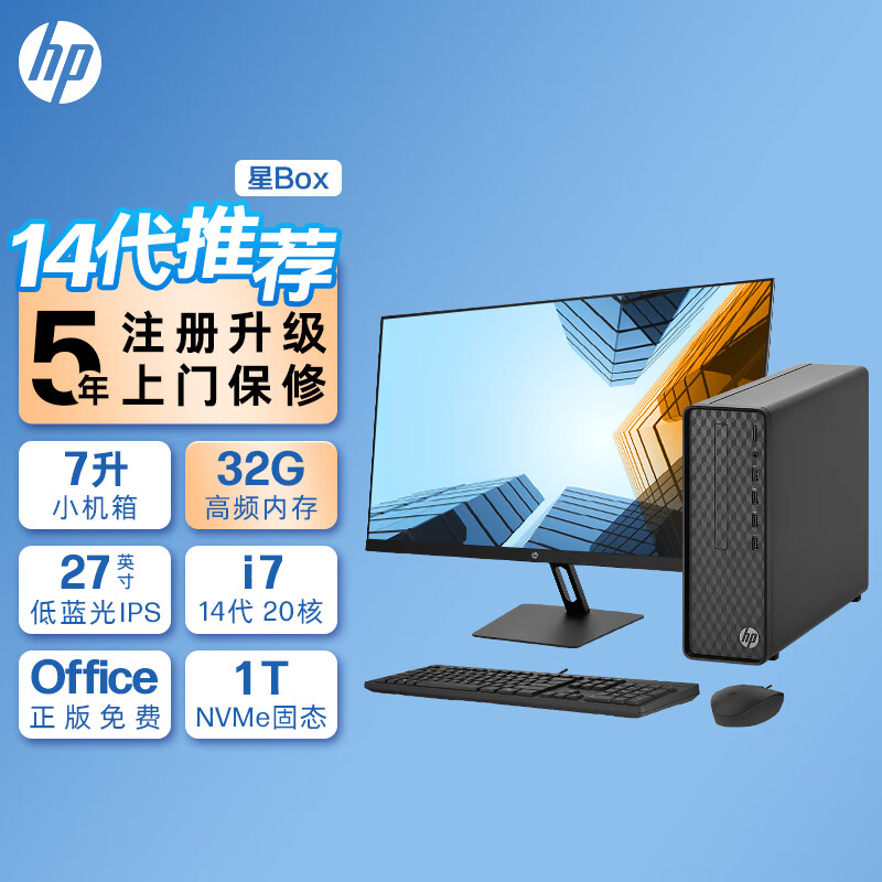 惠普HP 补贴 星Box高性能商务办公台式电脑台式机 (14代i7 32G 1TB WiFi 注册五年上门)+27英寸价格:6199.00元!