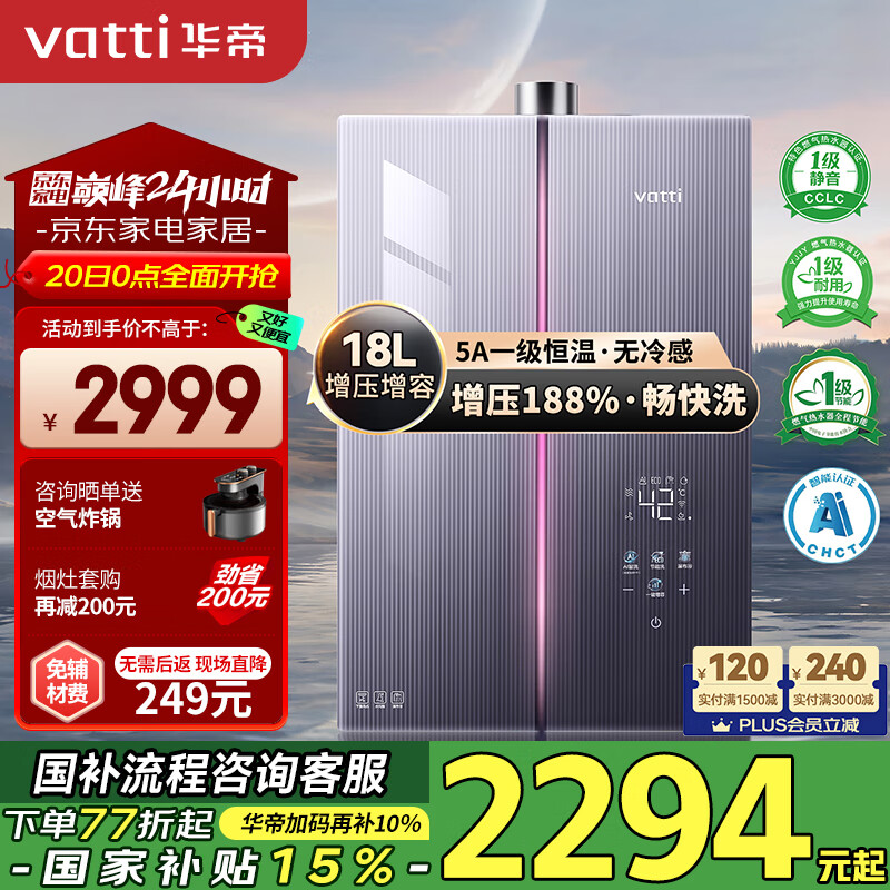 华帝(VATTI)政府补贴燃气热水器天然气16+2L小恒星G5Pro下置风机增压增容一级静音水伺服安睡洗i12581D-16价格:2999.00元!