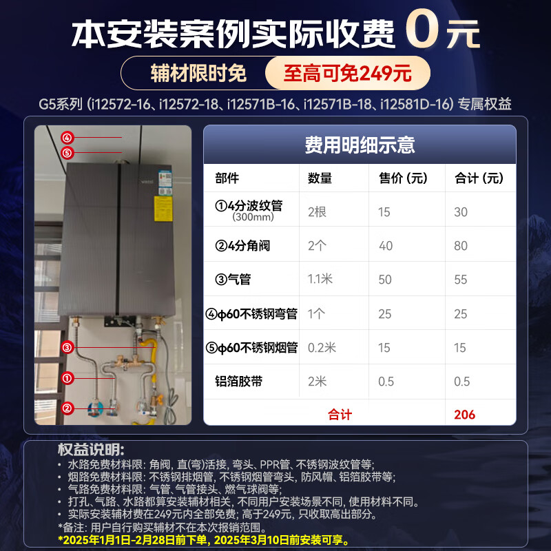 4、先是回收旧机,然后送新机,新机到货1小时后安装师傅上门安装,完美,热水器噪音小,热水快,因为是旧换新,安装全程无费用