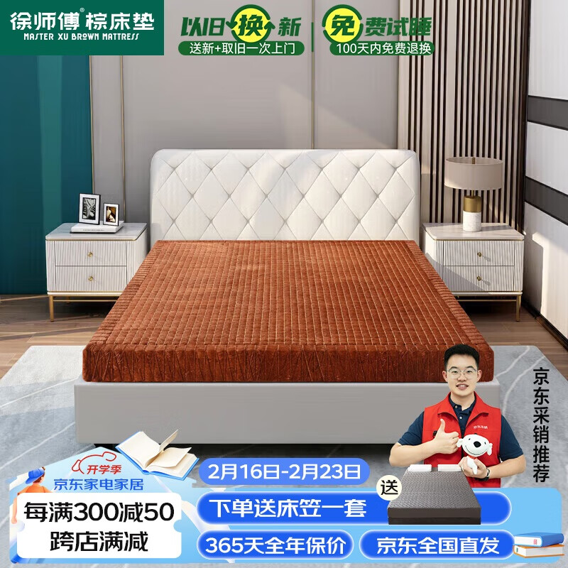 徐师傅全山棕床垫硬棕垫手工线缝单双人榻榻米床垫定制 2*2米价格:4387.00元!