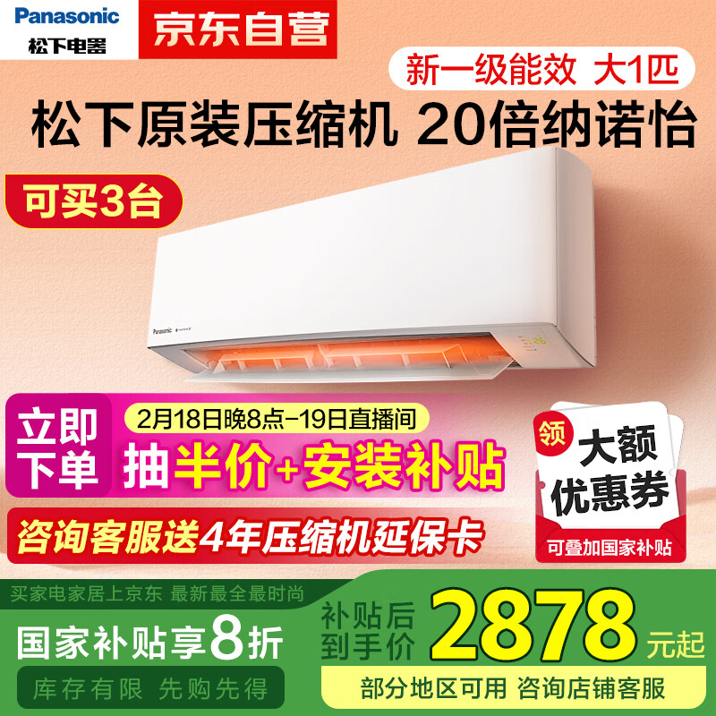 松下(Panasonic)空调滢风升级款 大1匹 新一级能效 变频冷暖挂机 ZY26K410 以旧换新家电补贴价格:3598.00元!