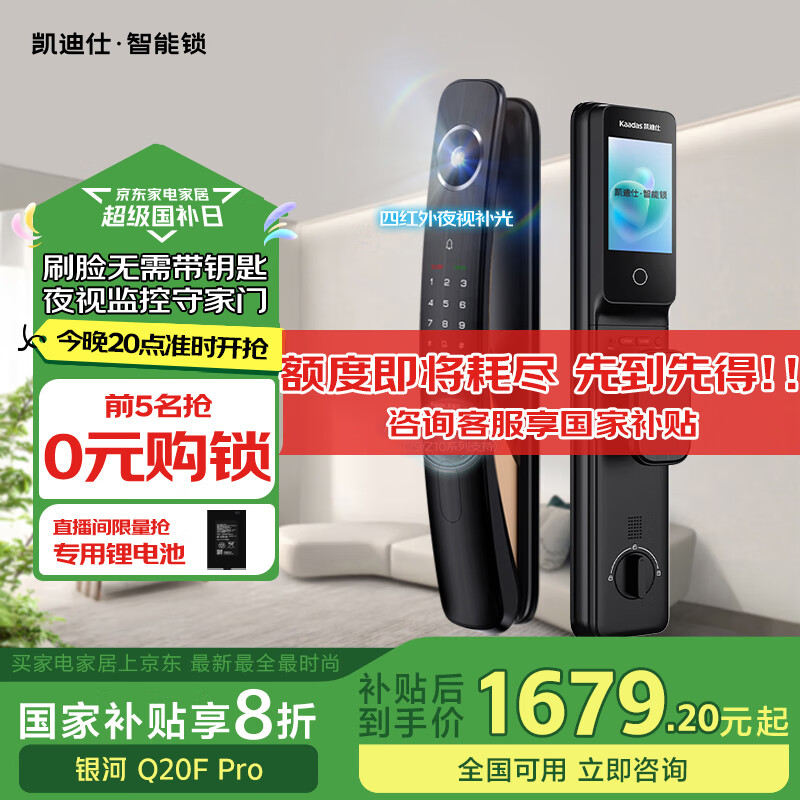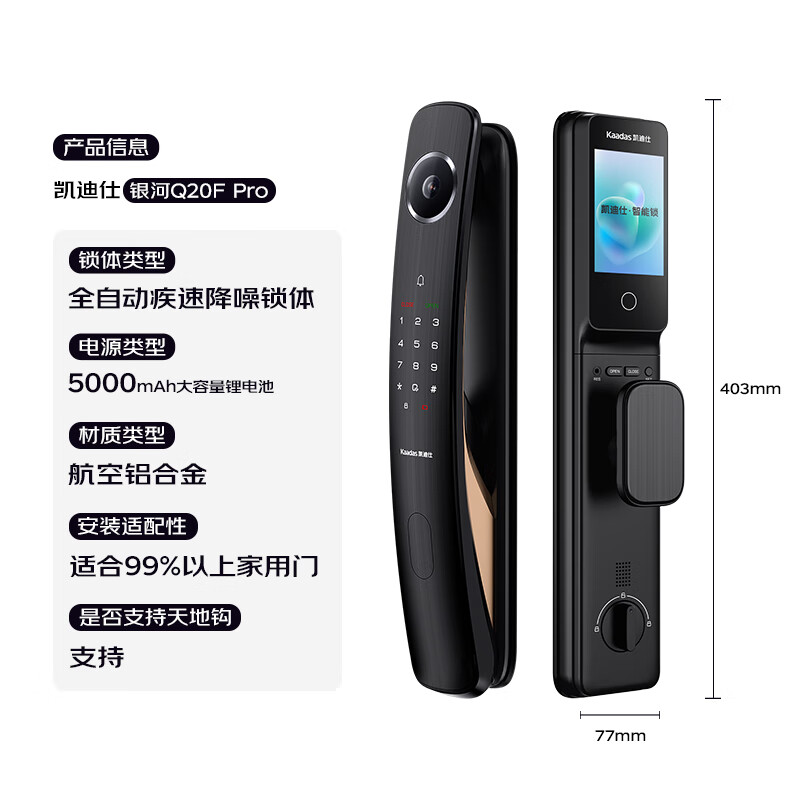凯迪仕(kaadas)智能锁 可视猫眼大屏指纹锁人脸全自动智能门锁 银河Q20F Pro价格:2299.00元!