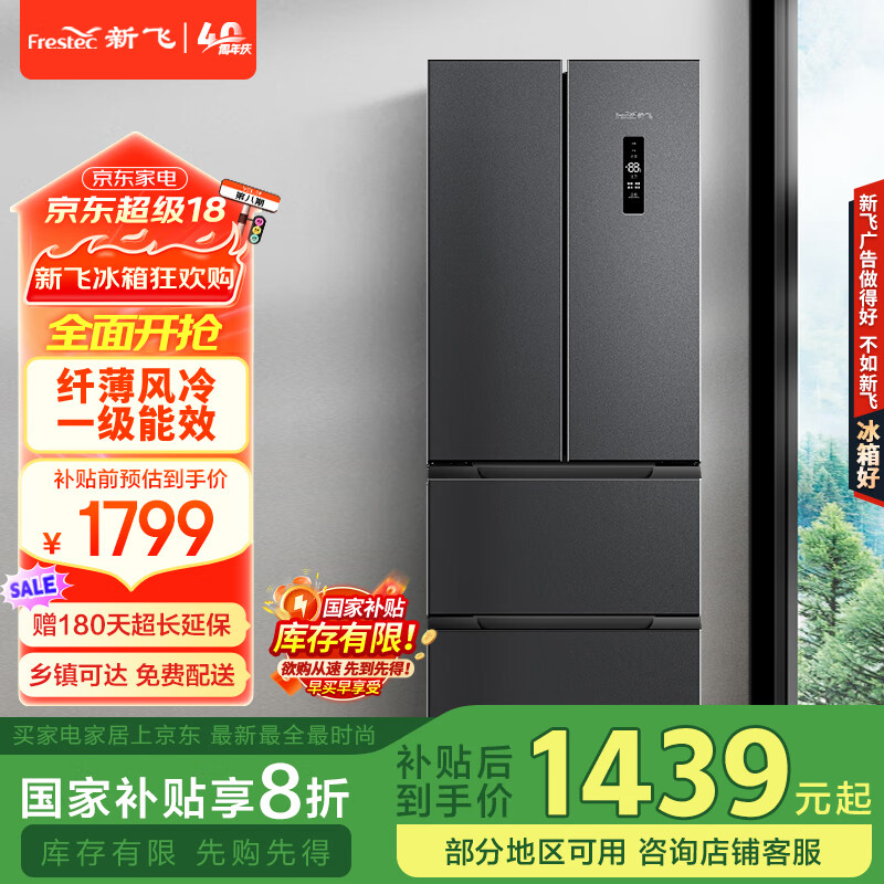 新飞(Frestec)336升法式四门多门电冰箱 一级变频风冷无霜三档变温补贴20% BCD-336WK7AT价格:1799.00元!
