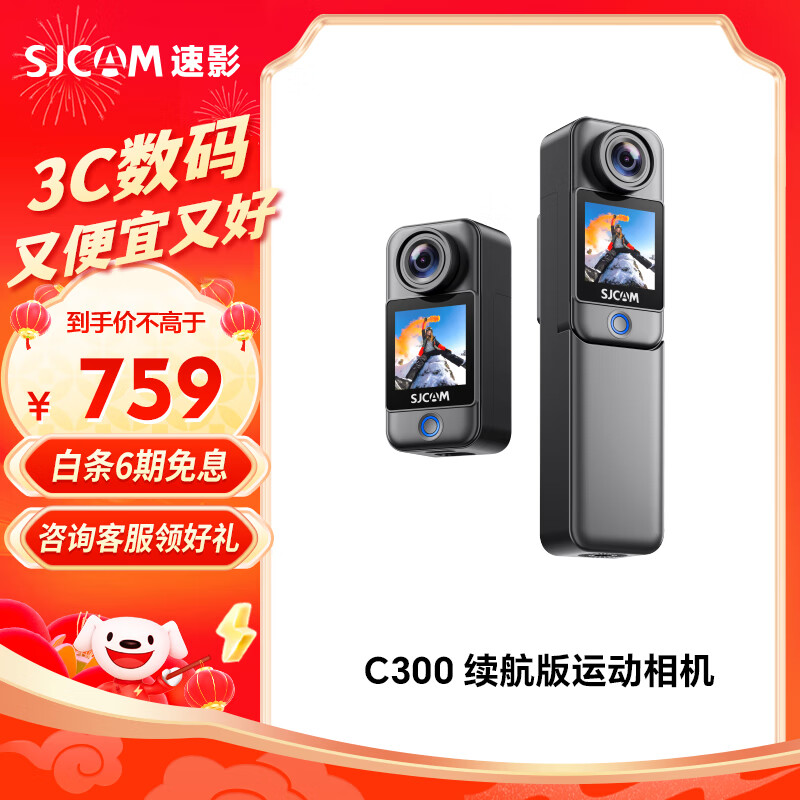 SJCAM速影C300续航版拇指运动相机摩托车头盔骑行防抖防水行车记录仪钓鱼vlog直播预录视角32价格:759.00元!