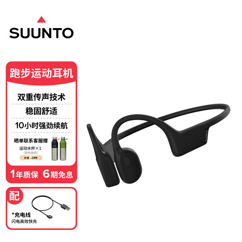 SUUNTO颂拓Sonic 【舒适稳固】骨传导蓝牙耳机无线户外运动跑步骑行开放式挂脖耳夹不入耳佩戴 鹰黑价格:799.00元!