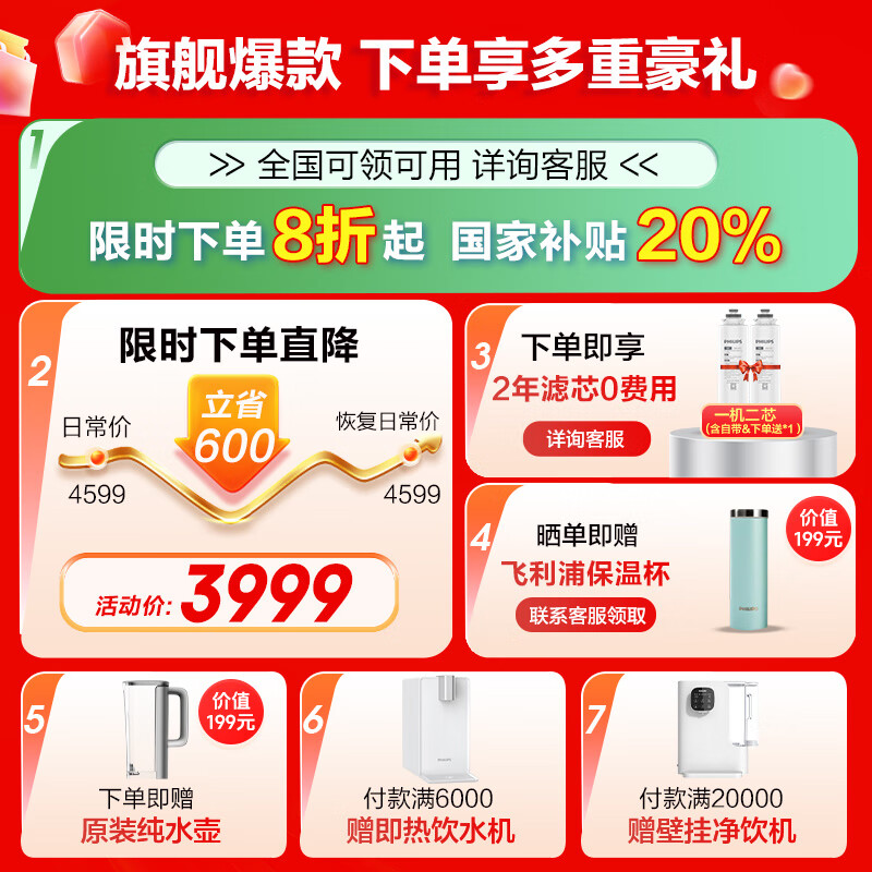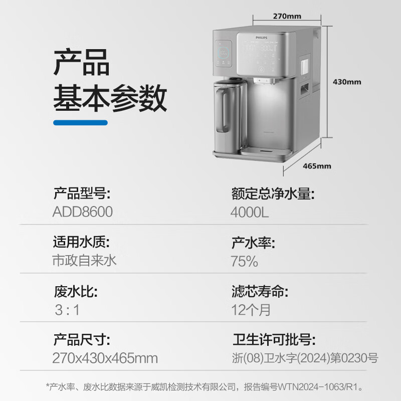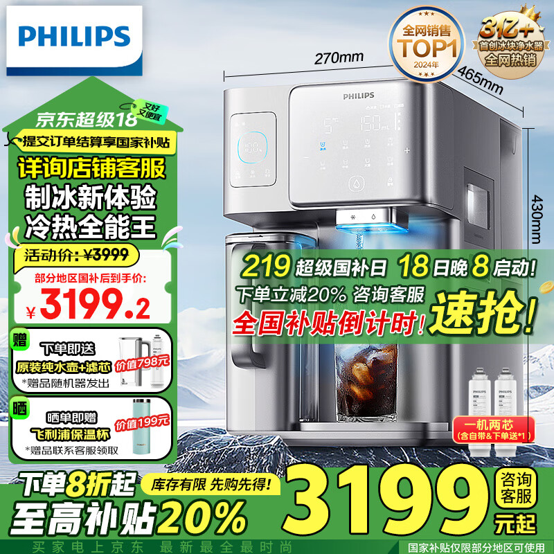 飞利浦(PHILIPS)冰块净水器家用台式即热免安装净饮机矿泉加热直饮一体机 全自动制冰机ADD8600【补贴】价格:3999.00元!