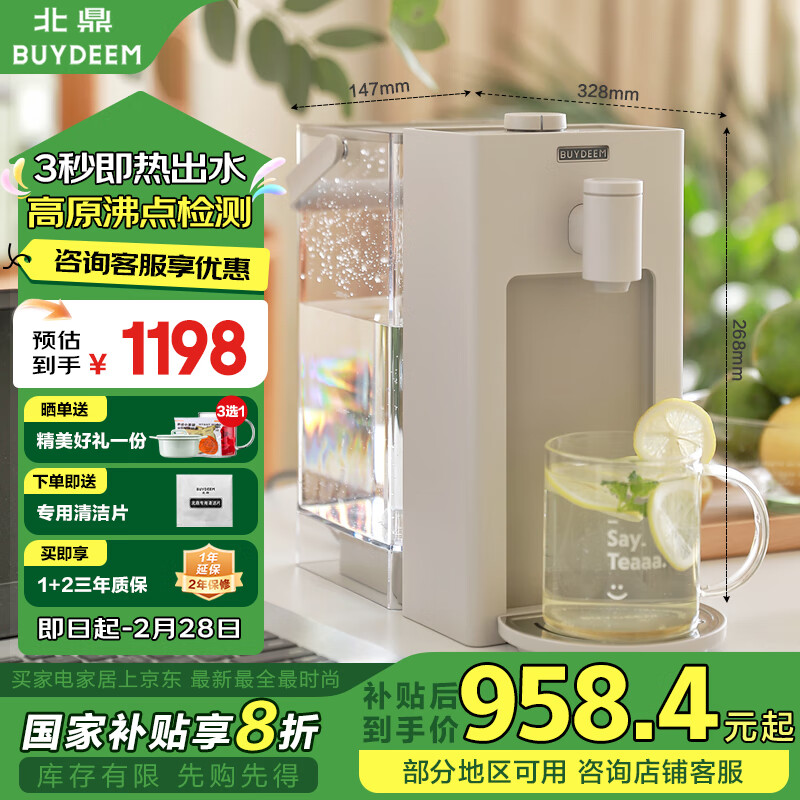 北鼎(Buydeem)台式饮水机办公室桌面即热式饮水机速热饮水机智能饮水机一体机3LS903燕麦白价格:1198.00元!