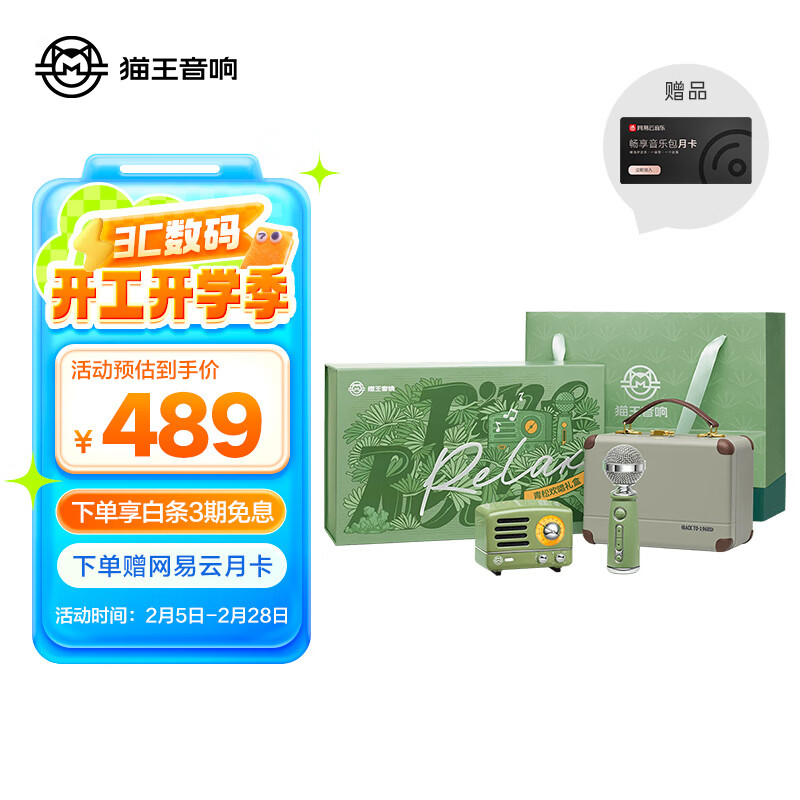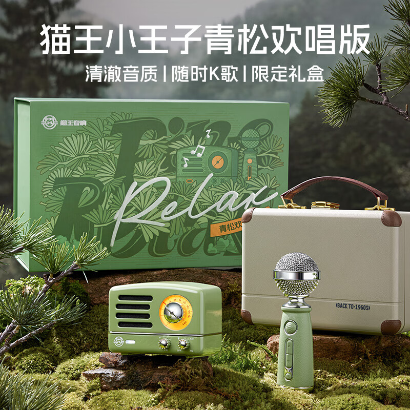 猫王收音机猫王音响猫王小王子OTR欢唱版便携式蓝牙音箱K歌音响麦克风 【青松欢唱礼盒】价格:489.00元!