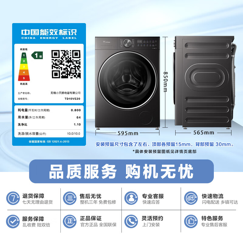 来问我小天鹅TD10VE20的质量参数,还有这款的开始销售的时间和用户的评价等等,如果你对此款感兴趣的话,不妨一起来瞧一瞧!外形外观:简约时尚,占地小,声音小洗净效果:洗净比1:1.1,非常棒!容量大小:家用床单、被罩都没问题,大件洗很实用!以旧换新:府以旧换新,现在买特别实惠!