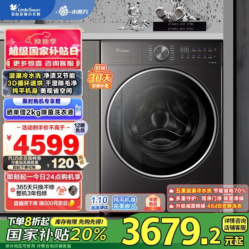 小天鹅(LittleSwan)滚筒洗衣机全自动家用 带烘干洗烘一体【小乌梅2.0轻奢版 TD10VE20】家电补贴20% 以旧换新价格:4599.00元!