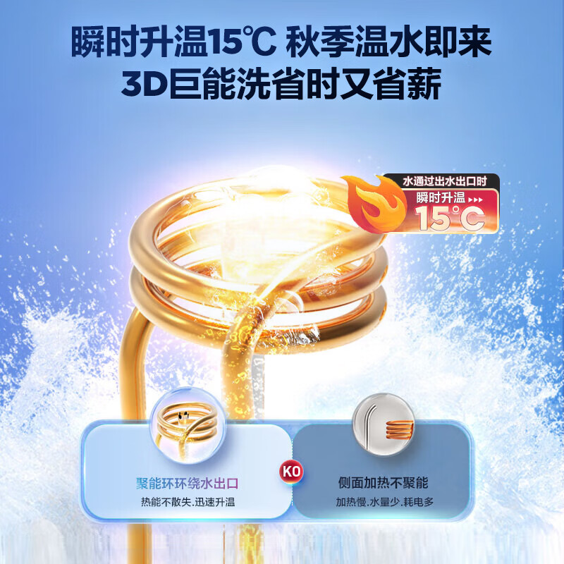 2、外形外观:外观很漂亮,全家人都喜欢,因安装位置很小,这个尺寸很好,不会跑出门边很多。加热速度:加热很快,双桶加热到60度大概20多分钟吧。耗能情况:显示是一级能耗,应该比较省电吧,用了一些时间都是开了智能模式,可以自动根据用水情况调节温度。洗浴时间:家在南方,完全可以满足一家四口的使用需求。