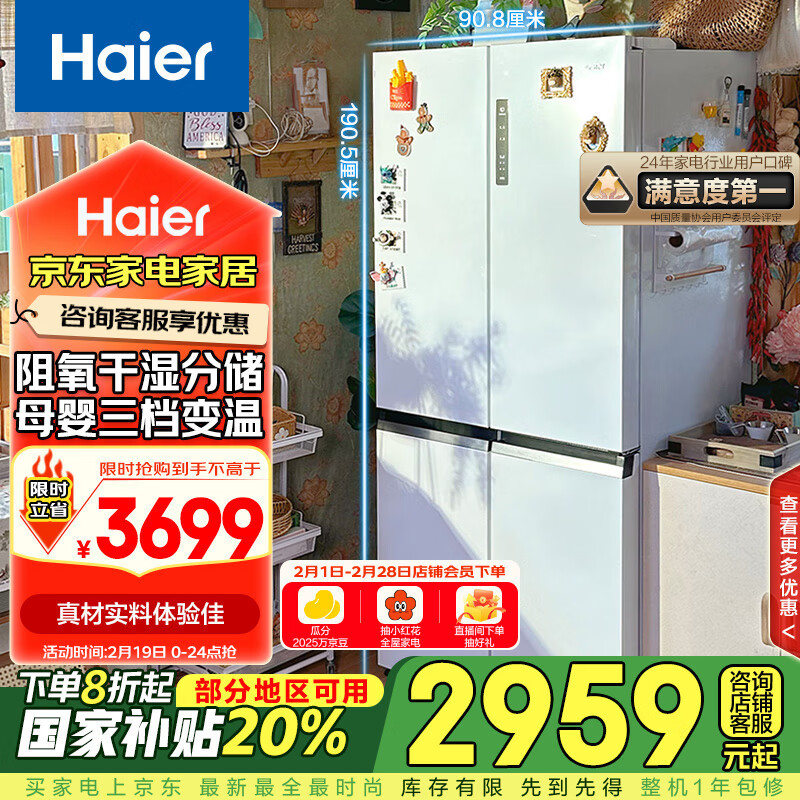 海尔(Haier)549升十字双开对开四开门电冰箱家用一级能效变频节能风冷无霜超大容量以旧换新BCD-549WGHTD58WV价格:4199.00元!