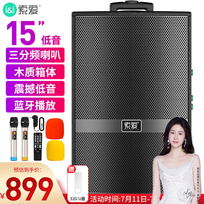 索爱(soaiy)SA-X23 大功率重低音广场舞电木吉他乐器音箱户外蓝牙拉杆音箱扩音器麦克风地摊摆摊喇叭15寸价格:849.00元!