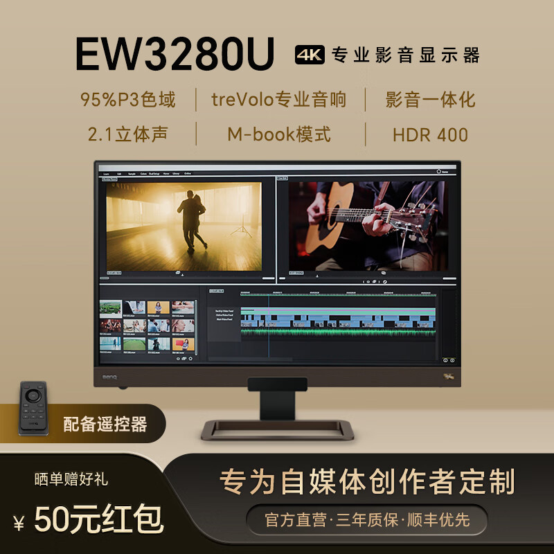 明基(BenQ)EW3280U显示器 32英寸4K P3视频后期剪辑观影 Mac护眼typec音箱PS5价格:4699.00元!