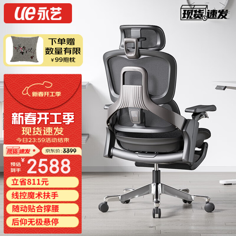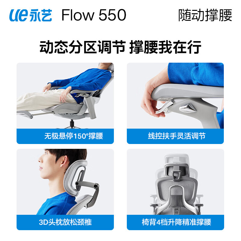 永艺撑腰椅Flow550 人体工学电脑椅 电竞椅午休可躺带脚踏办公椅价格:3399.00元!