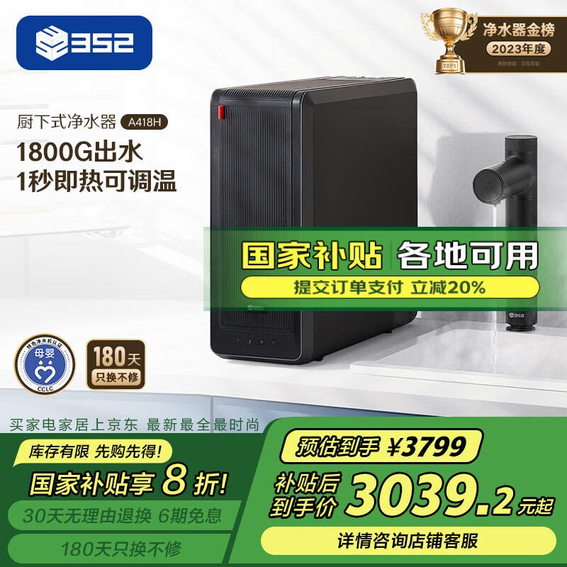 352加热净水器25款1800G常温出水4.6L/min 反渗透直饮即热400G通量净饮机净热一体机A418H价格:3799.00元!