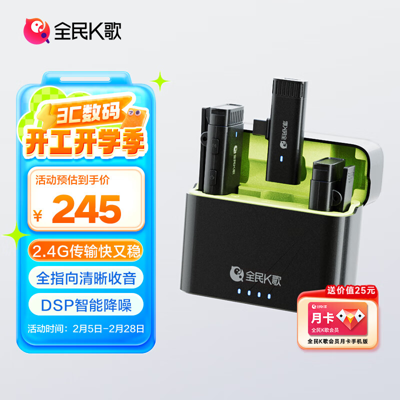 K歌 无线麦克风MC61 一拖二无线领夹麦克风 手机相机采访vlog直播录音收音麦价格:289.00元!