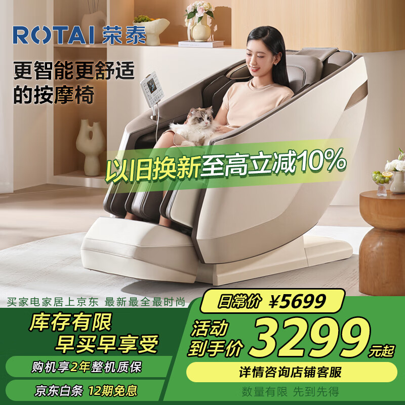 荣泰(RONGTAI)按摩椅家用全身按摩太空舱2025十多功能智能小型按摩沙发椅情人节礼物A36smart灰啡色价格:3299.00元!
