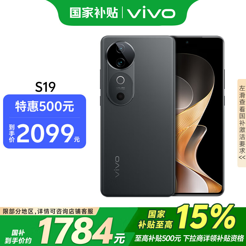 vivo S19 12GB+256GB 松烟墨 补贴 6000mAh超薄长续航 影棚级柔光环 第三代骁龙7 拍照 AI 手机价格:2599.00元!
