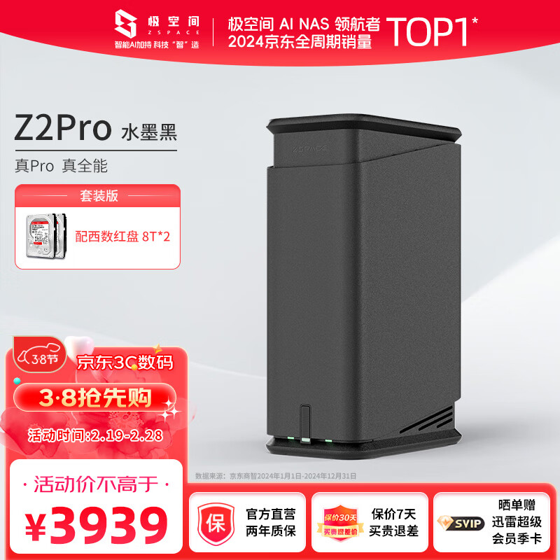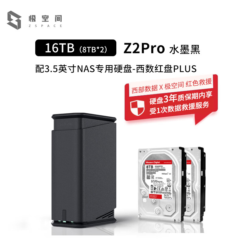 极空间私有云Z2Pro 四核2盘位NAS家庭个人云网络存储服务器手机平板扩容 水墨黑 配2块8T西数红盘Plus价格:4139.00元!