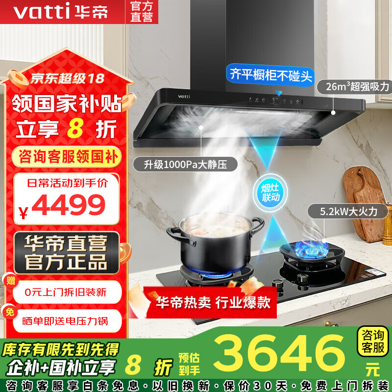 华帝(VATTI)【S35 小飞碟】政府补贴20%油烟机官方 欧式超薄平嵌 超薄顶吸 S35/S35P 大吸力油烟机自清洁 S35+309L26风量+5.2KW丨烟灶联动 天然气价格:4499.00元!