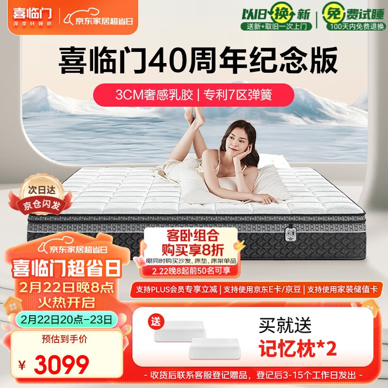 喜临门3cm乳胶专利7区深睡弹簧床垫 舒脊黄麻床垫 白骑士 喜礼 1.8x2米价格:3099.00元!
