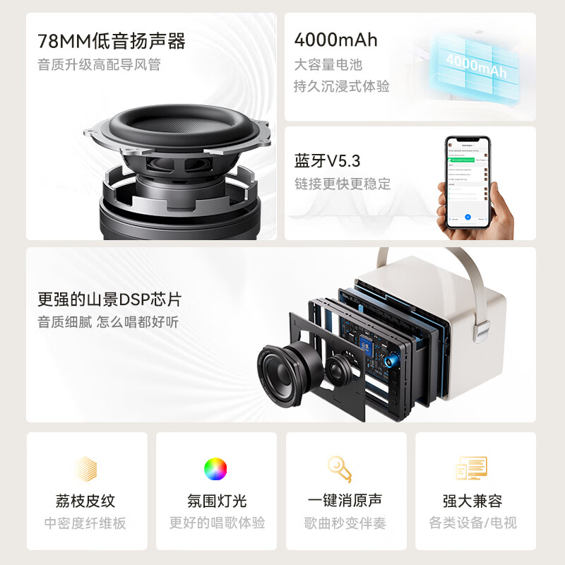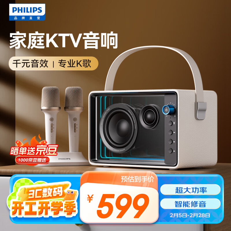 飞利浦(PHILIPS)5519话筒音响一体机自带声卡拉OK家庭ktv音箱套装手机电视K歌无线蓝牙便携麦克风 双麦版价格:598.00元!