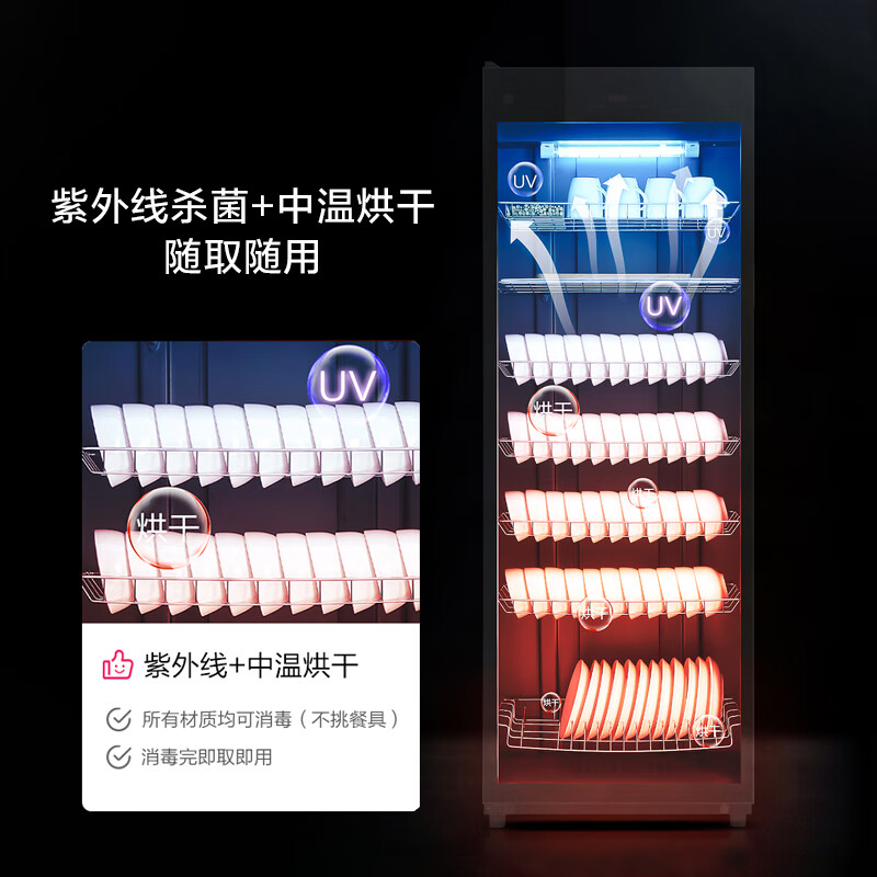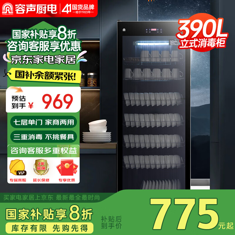 容声(RONGSHENG)消毒柜家用 立式消毒柜 消毒碗柜 双开门家商两用厨房商用大容量390L大容量390-RD305(S)价格:969.00元!