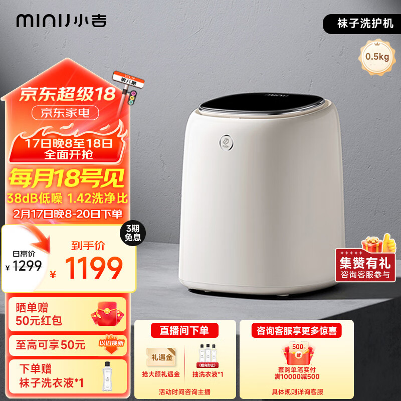小吉(MINIJ)0.5kg洗袜子洗衣机除菌洗袜子神器袜子专用小型迷你变频洗衣机S10-M价格:1199.00元!