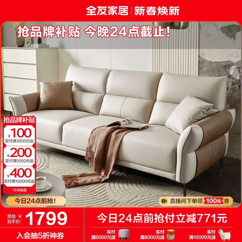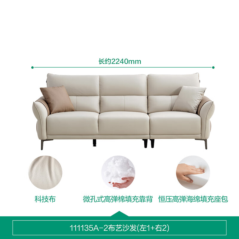 全友家居 家用客厅沙发小户型现代简约实木框架直排科技布沙发111135价格:2570.00元!