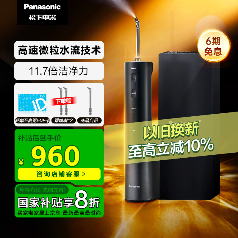 松下(Panasonic)冲牙器洗牙器水牙线洁牙器家用立式便携牙医推荐敏感正畸专用情人节礼物送男友送女友黑苏打NJ80价格:1199.00元!