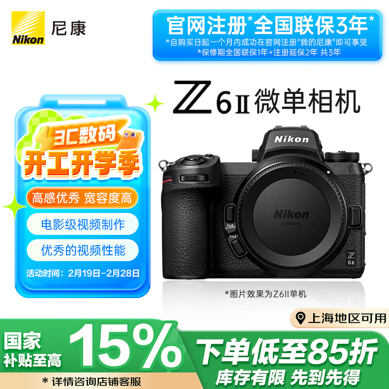 尼康(Nikon)Z6II(Z6 2/Z62)全画幅微单机身 微单机身(约2,450万有效像素 5轴防抖)价格:8949.00元!