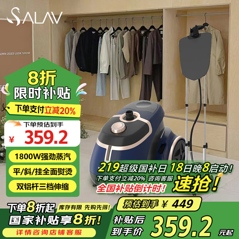贝尔莱德(SALAV)挂烫机家用 蒸汽熨烫机 手持熨斗 烫衣机大水箱GS46-BJ/W(青色)价格:449.00元!
