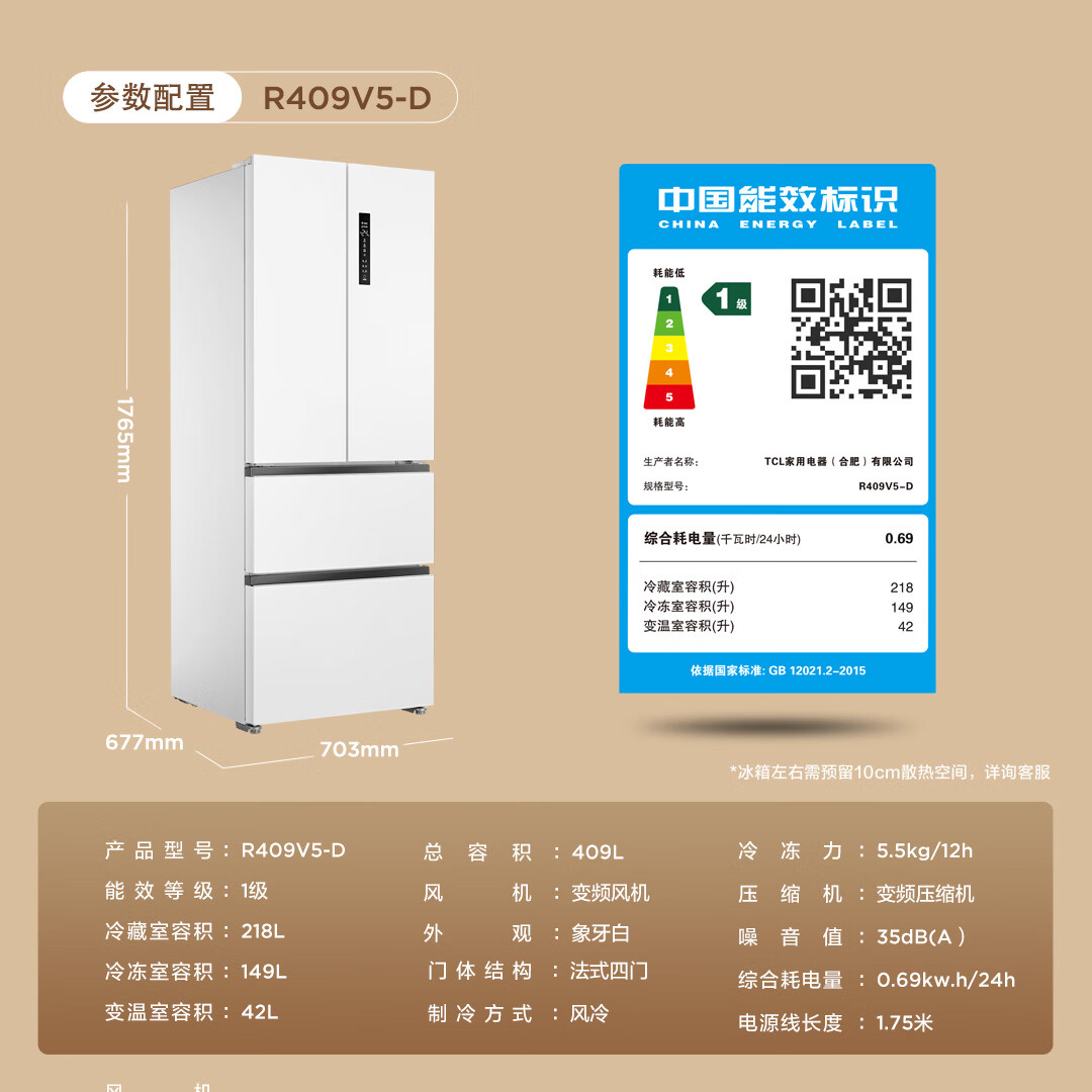 TCLR409V5-D象牙白配置参数: