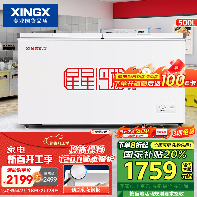 星星(XINGX) 500升 大容积卧式单温冰柜 冷藏冷冻转换冷柜 单箱变温冰箱 BD/BC-500R补贴价格:2199.00元!