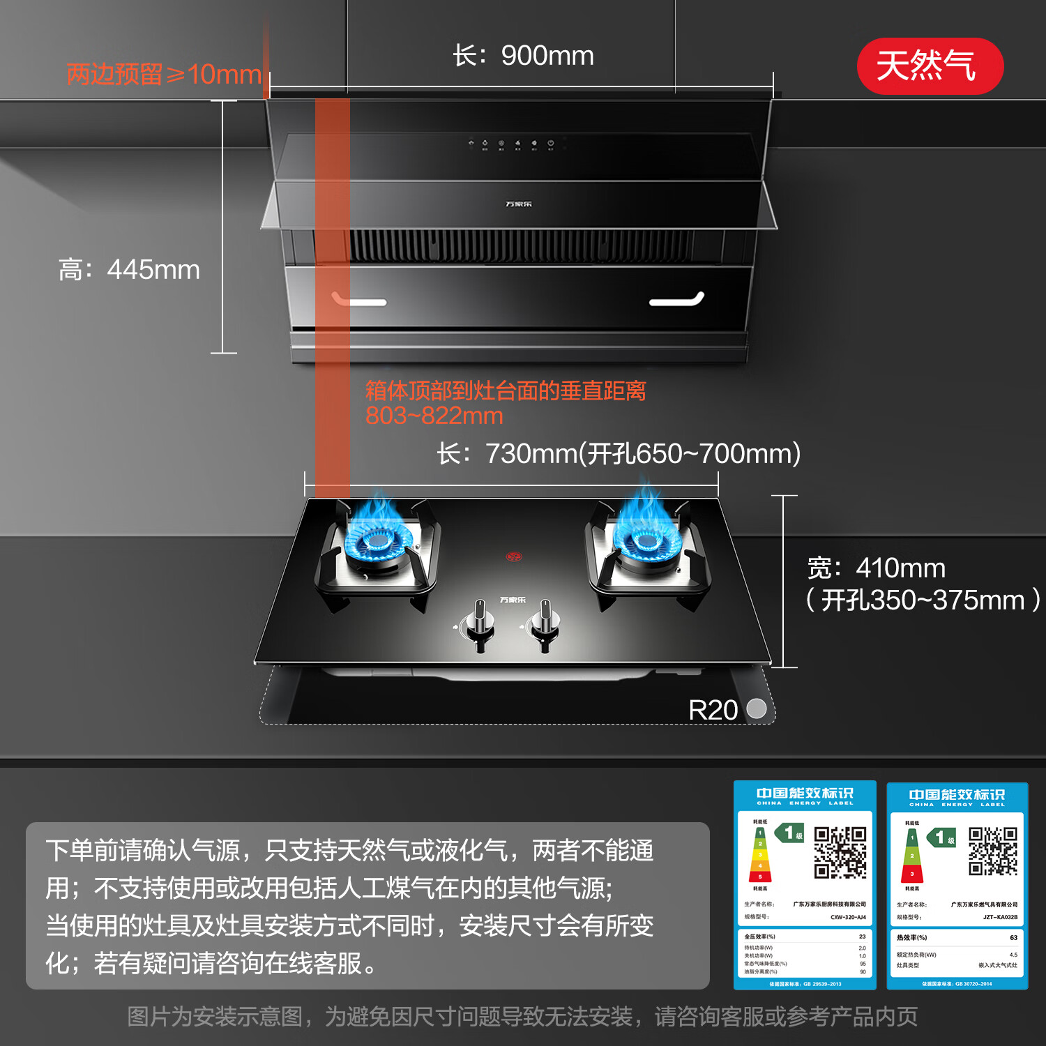万家乐 抽油烟机 侧吸式自清洁【飓风套装】23风量大吸力烟灶家用油烟机燃气灶具套装AJ4+KA032B天然气价格:1449.00元!