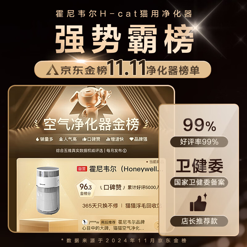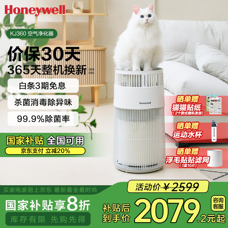 霍尼韦尔(Honeywell)宠物空气净化器吸猫毛除过敏源猫猫搭子 猫毛净化器杀菌消毒除异味【家电补贴】KJ360F-C22W价格:2599.00元!