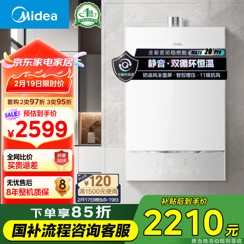 美的(Midea)16升燃气热水器天然气 【国补立减15%】静音一级节能 水伺服恒温 密闭稳燃 JSQ30-MATE20 Pro价格:2599.00元!