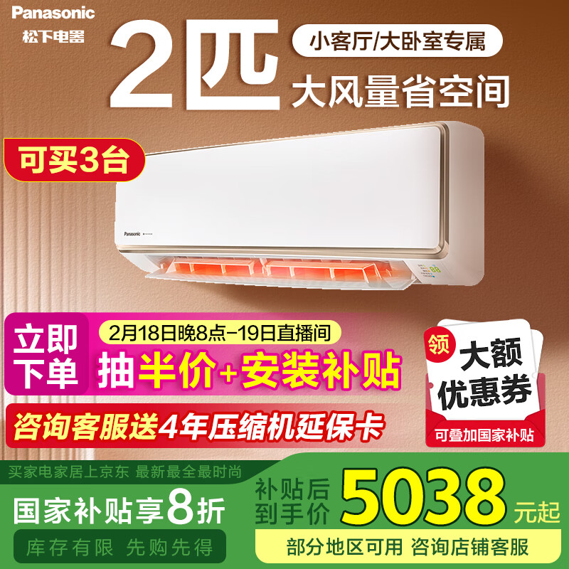 松下(Panasonic)空调挂机2匹 新一级能效 变频冷暖 原装压缩机CA50K410N 以旧换新家电补贴价格:6298.00元!