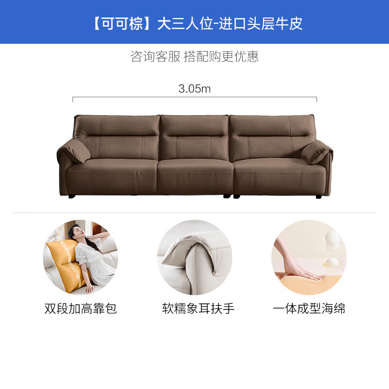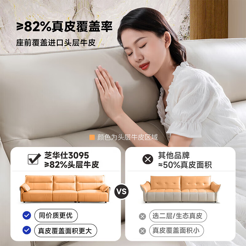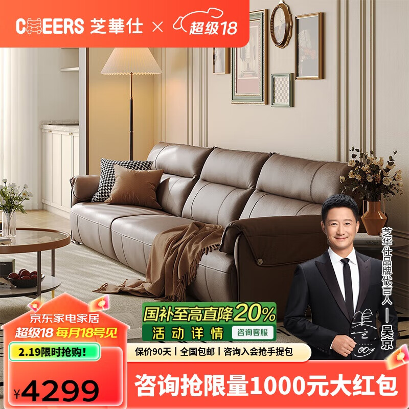 芝华仕(CHEERS)现代轻奢真皮沙发直排头层牛皮沙发客厅简约芝华士3095棕大三价格:4299.00元!