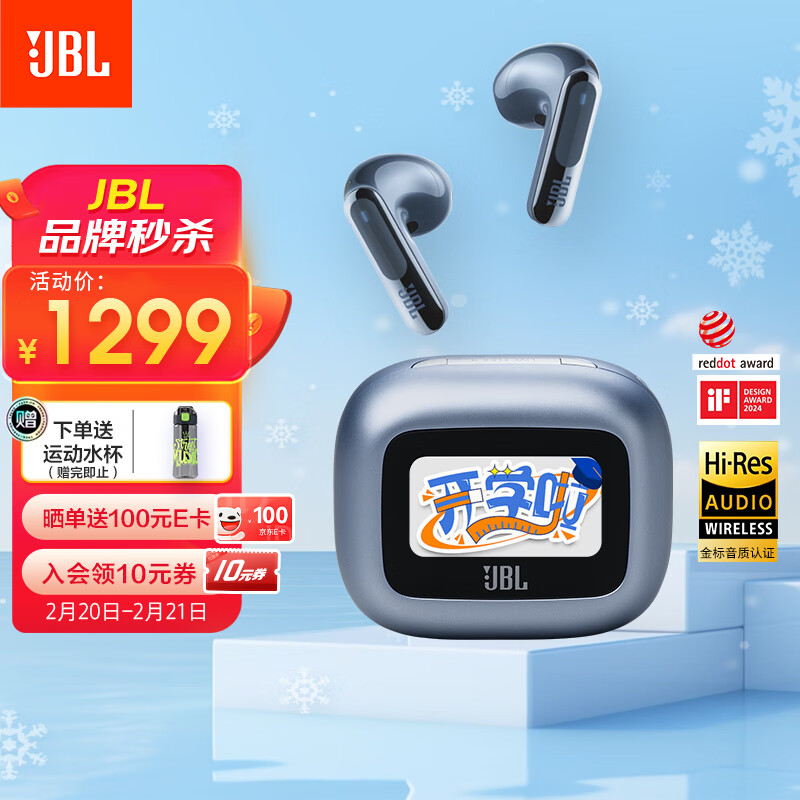 JBL LIVE FLEX 3 晶彩荚无线蓝牙耳机智能触屏自适应降噪半入耳式耳机苹果华为小米通用生日礼物 蓝色价格:1399.00元!
