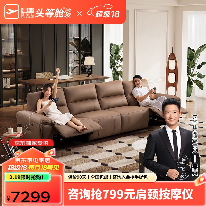 芝华仕(CHEERS)头等舱智能椅贵族皮沙发零靠墙复古电动功能芝华士30269棕四价格:7299.00元!