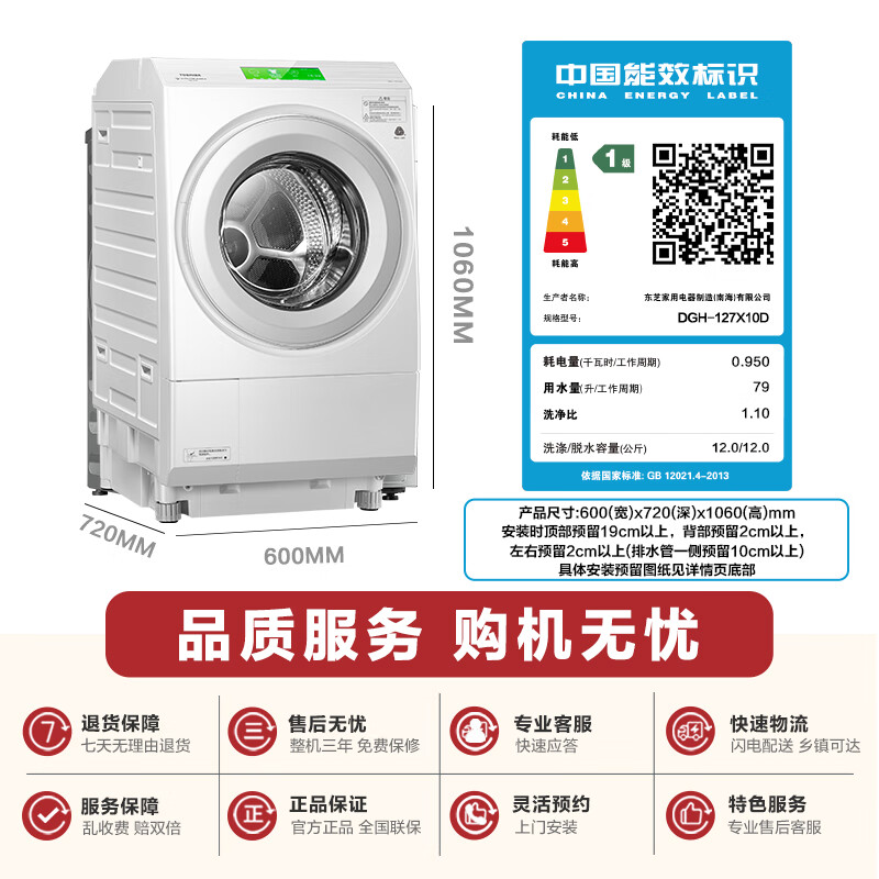 真的要说东芝DGH-127X10D挺好的,洗衣机安装了,感觉很不错,物流也快,安装也认真,家里人都觉得不错!