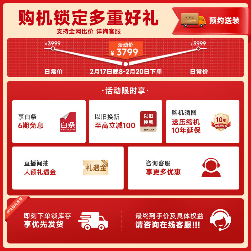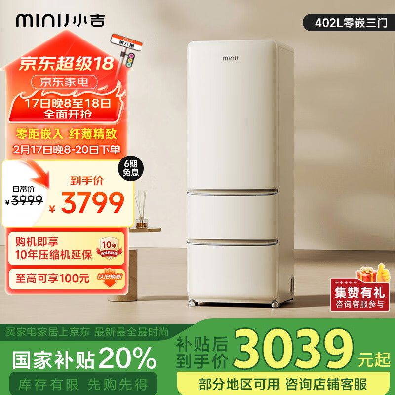 小吉(MINIJ)[补贴20%]402L双变频风冷无霜一级能效三门客厅复古冰箱奶油风干湿分储变温低噪BCD-JY402W价格:3799.00元!