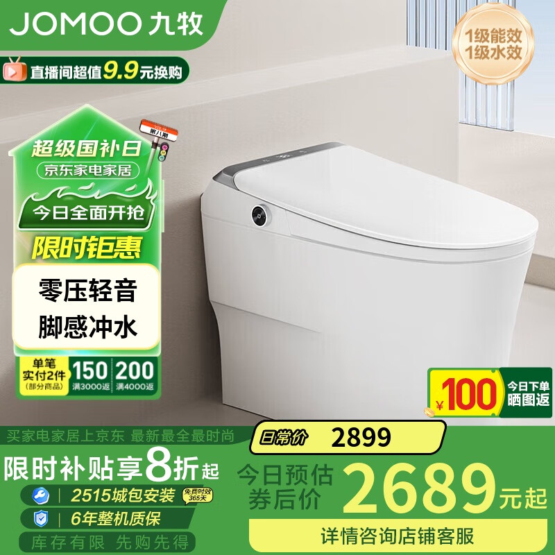 九牧(JOMOO)智能马桶一体机带水箱不限水压脚感冲水智能坐便器ZS760J 400坑距价格:2899.00元!