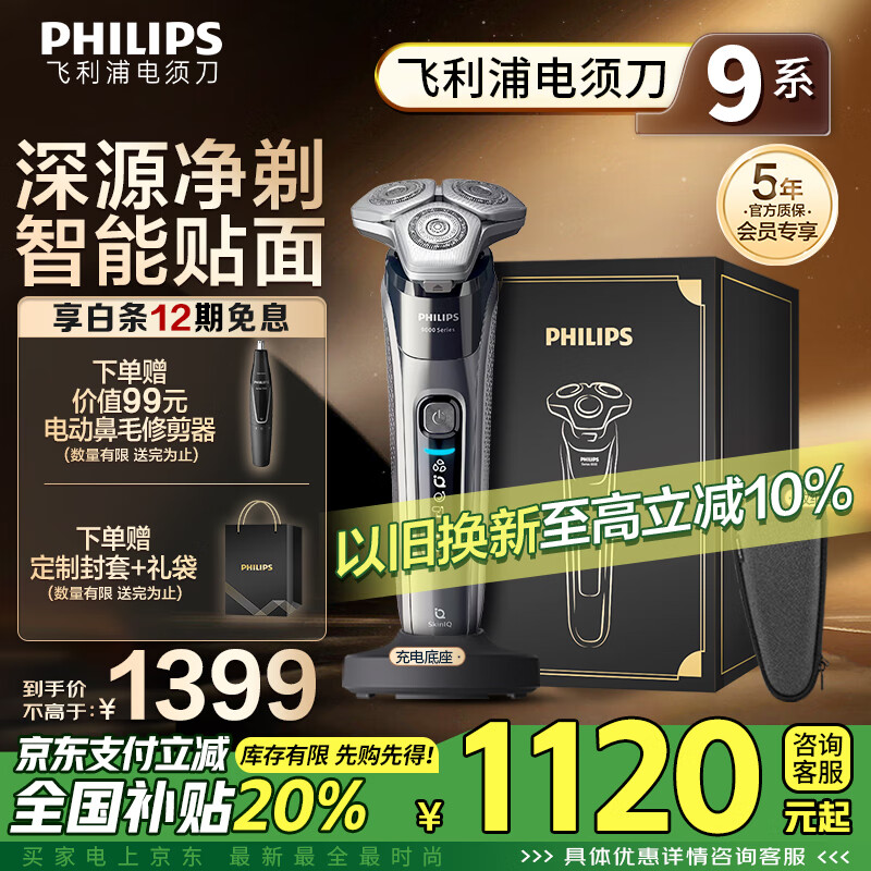 飞利浦(PHILIPS)电动剃须刀9系 SkinIQ高端智能刮胡刀 生日礼物 送男友 送老公 补贴价格:1359.00元!