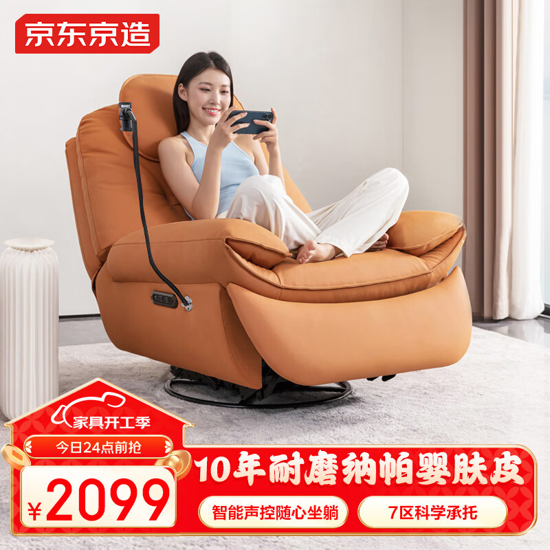 京东京造家居海豚椅单人沙发 纳帕生态皮智能声控双电机 电动款橙价格:2299.00元!